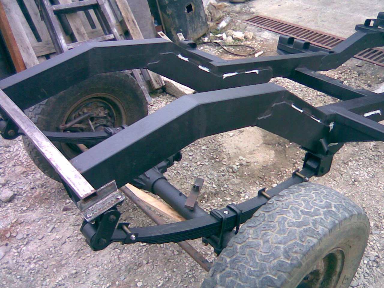 frumos lucrat pana aici.dar de ce nu iai pus puntea fatza pe arcuri elicoidale. dar si pe spate to punte de uaz pui? vezi ca si cutia de uaz potriveste la BV nmuma tre sa faci alte gauri de prindere,pretinu ala al meu o pus pe doua camionete,cu aia nu mai ai treaba sa sara din viteze. ce sa zic spori la treaba.