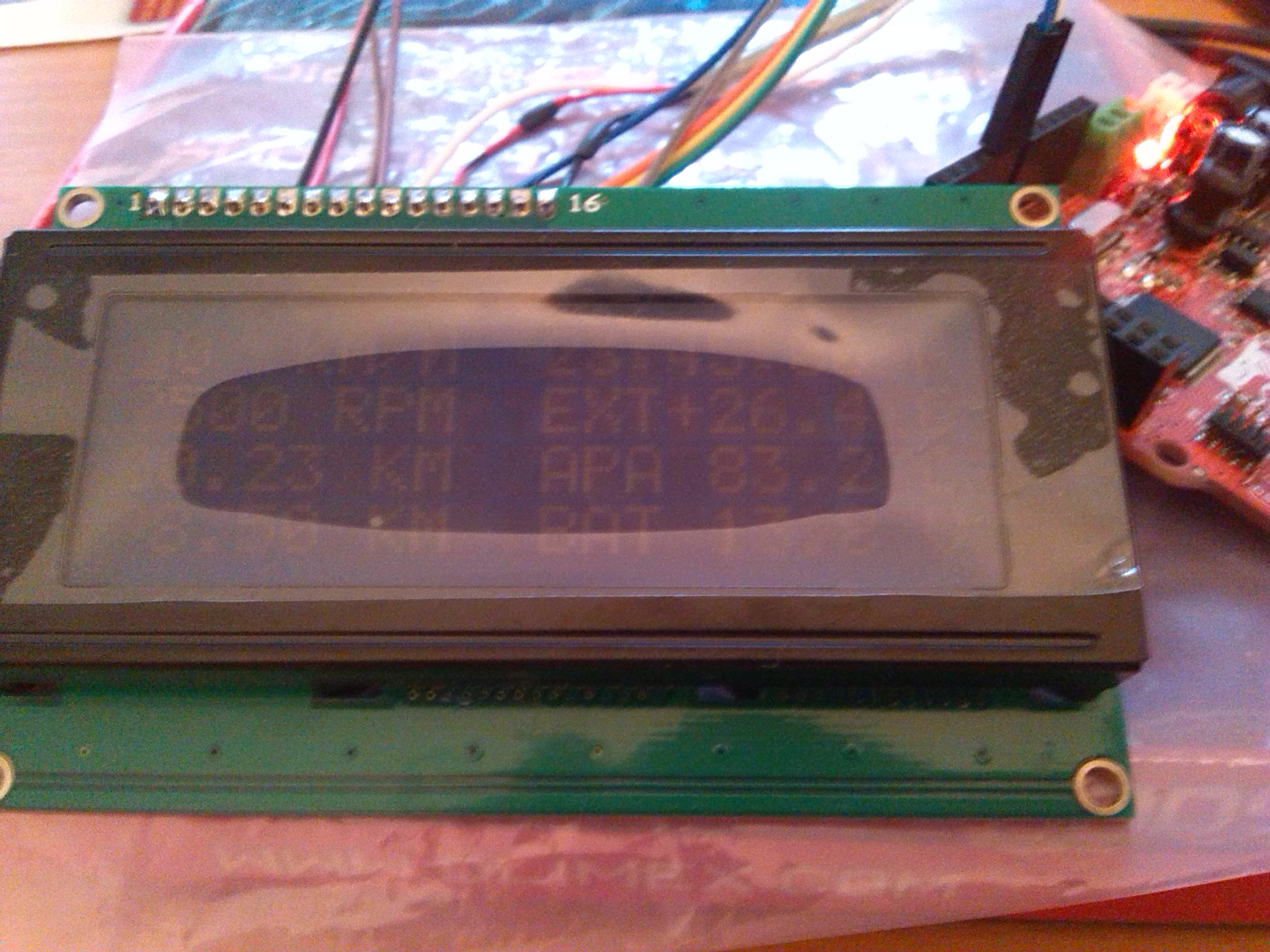Si am luat sonda de la Cristi de vrun an... Mi-am adus jucariile si firele acasa, am ajuns si la o forma finala de informatii pe care le vreau pe LCD, dupa cum urmeaza in imaginea de mai jos. Am si trei divizoare de tensiune ca sa pot folosi doua fire direct din baterie pt voltmetru, si direct de la sonda de apa Placuta cu chipu STM32 care din pacate trebe resoftata, si pt asta imi trebe o minune de cablu special pe care il iau maine, LCD-u, alimentare de 5V pt LCD, pt ca placa scoate doar 3.3V  si mai vedem... O sa postez pe masura ce prestez ceva. Pana una alta cam asta vreau: viteza, turatie, kilometraj partial (gen trip valoarea mica), kilometraj total (gen trip valoarea mare), ora precisa ca sa fim punctuali, temperatura exterioara ca sa pot sa zic 'a luat-o la -10 grade la a 6-a cheie!', apa din moteur ca sa vaz exact cum merge termostatu minune WAHLER... ar trebi sa stee batz la 83 si desigur voltmetru... nu ca n-as avea incredere in alternatoru de nissan, da e interesant de vazut ce si cat consuma....
