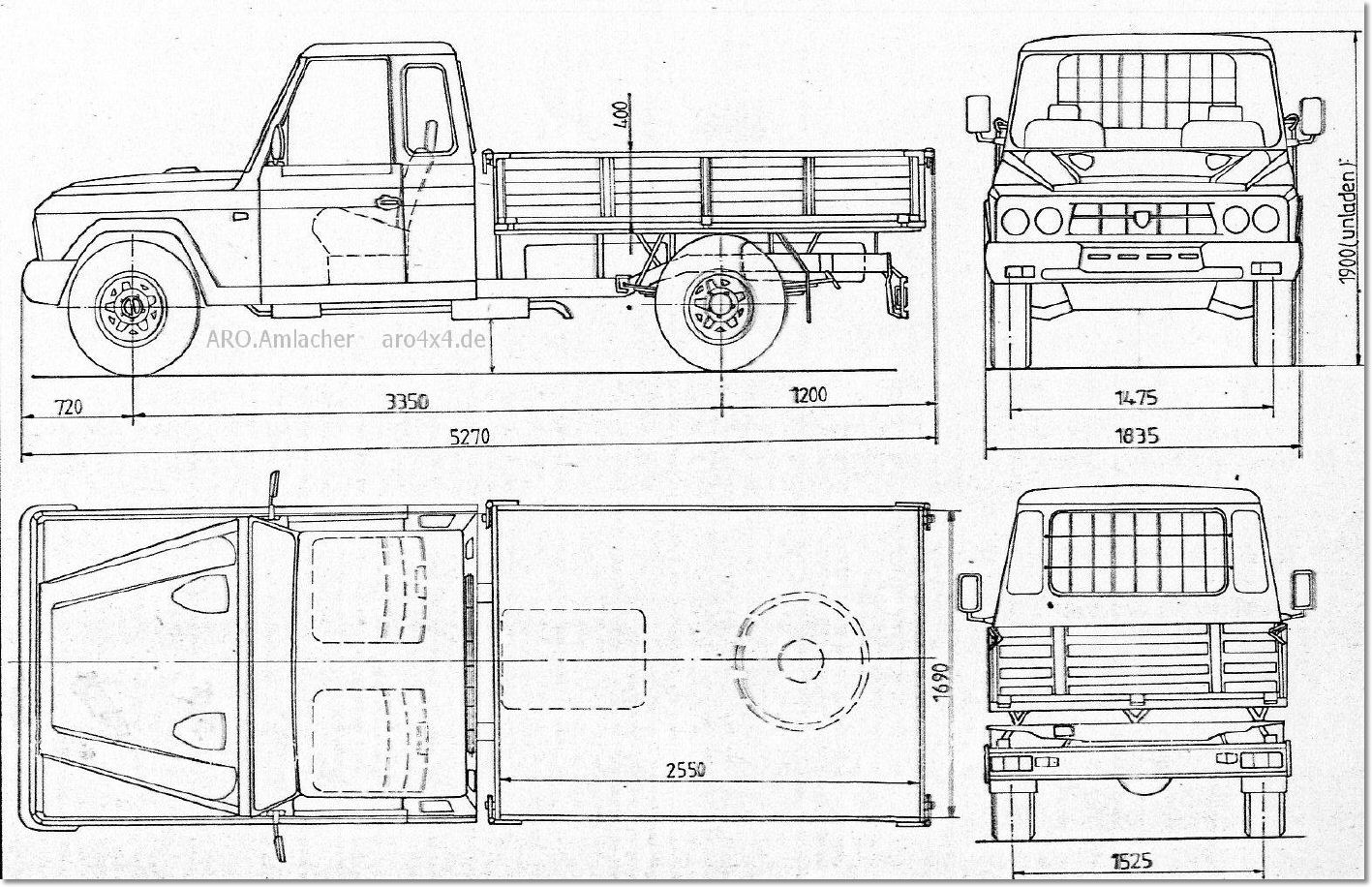 Scheme cu dimensiunile exterioare ale modelelor 242/ 243/ 243 Furgon / 244 / 246 / 324 /328 Furgon / 330