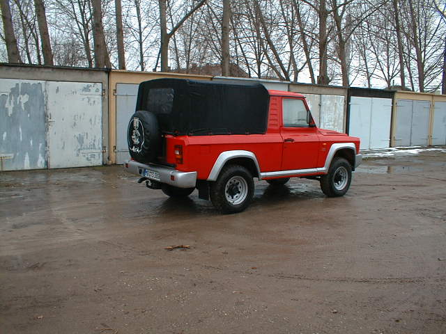 Roti: jante 4.5E x 16 (6JJ X 15), pneuri 6.50 - 16C/10PR M+S sau JR 78x15 / 10 PR (235/75R15 M+S) presiunea aerului in pneuri: fata- 2 daN/cm2 (29p.s.i.) spate 2.75 daN/cm2 (40p.s.i.) Directie: mecanica, cu melc globoidal si rola dubla (servoasistata, cu surub si bile recirculate) VITEZA MAXIMA (km/h) 120 VITEZA minima stabila (km/h) 2,2