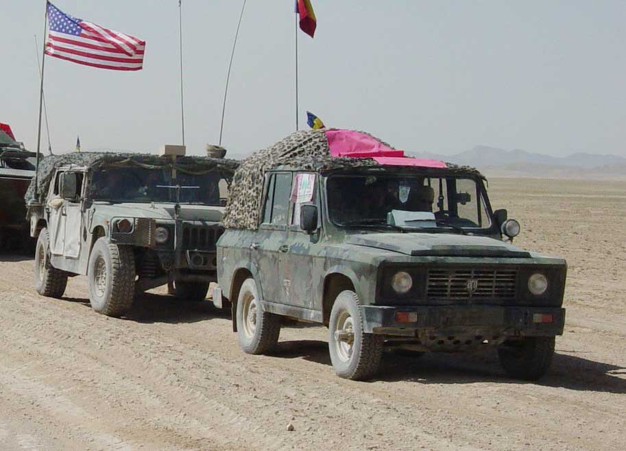 Axa spate: ARO, motoare permanent Suspensie dependenta, arcuri cu foi, amortizoare hidraulice cu dublu efect