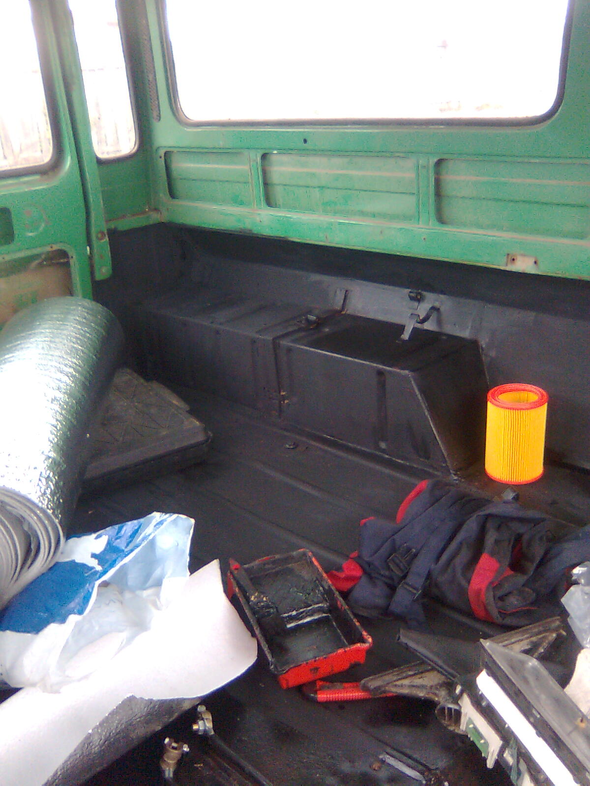 - Montaj rezervor cu bridele de la Rudy (multumesc) - Tras conducte tur-retur pentru alimentare si conectat la "instalatie" - Schimbat porcusor (distribuitor spate) cu unul nou - Desfacut si reglat saboti si cilindri pe fata, inclusiv garnituri noi. S-ar parea ca iarna ma prinde cu saboti pe toate rotile. - Schimbat garnituri de la rezervorul de pe pompa de frana. - Terminat circuitul de racire cu adapari de la radiator de L25. - Terminat admisia de aer (coloana (curatata si vopsita)) burduf si filtru uscat (tip sport) (Multumesc tudop) - Joja ulei (Multumesc tudop) - Montaj alternator clasic (Romanesc) pe intinzator si curea paleti radiator. - Inlocuit cot pompa de alimentare clasica cu unul nefisurat, urmeaza o adaptare pentru capsularea si etansarea sa. - Prindere opritor - Prindere cablu de acceleratie