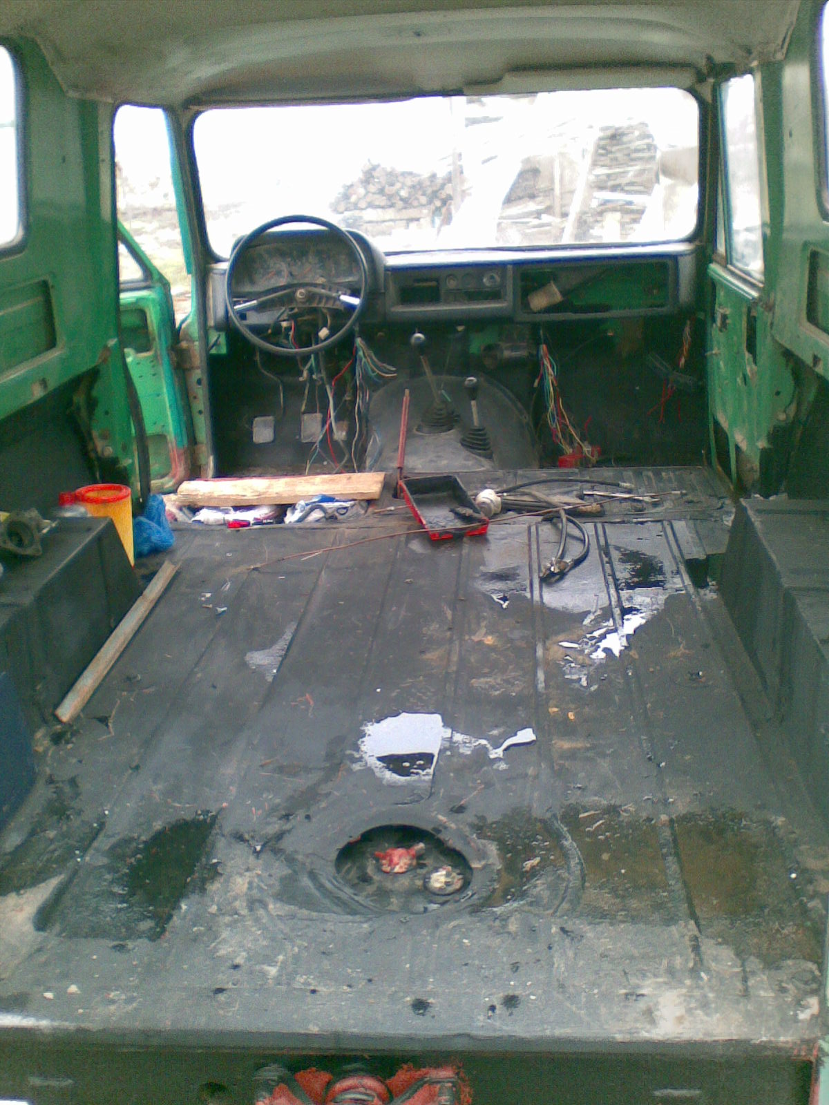 Cazanul a revenit pe plaiuri mai apropiate, zona Copou, la Adi... Sa speram ca reusim trei puncte de sudura si poate o vopsea... Intre timp am mai lucrat si la partea mecanica. Modificat ambreiajul intru montaj rezervor pe caroserie si nu direct pe corpul pompei. Piesele necesare procurate de la tudop (multumesc). Demontat parghii frana de mana - erau niste improvizatii atipice - intru montaj parghii originale pe dimensiuni bune, si ulterior cablu de frana. Se mai lucreaza... Prindere coloana directie (clasica - originala) Urmeaza continuarea... poate iese ceva... poate chiar anul asta
