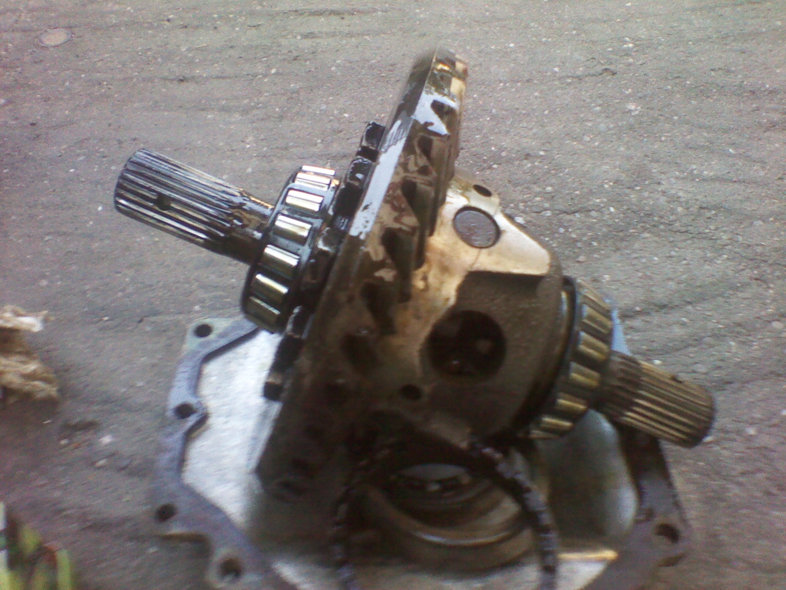 In week-endul trecut am inceput tratamentul pentru planetara stanga spate, care s-a rupt din dreptul canelurilor. Am incercat sa scot demontand doar capacul, insa nu a mers. O sa incerc in week-end sa desfac grupul+puntea spate, ca sa verific si foile tot de pe stanga si sa curat spanul rezultat. Am facut si o mica modificare, temporara, pe partea de imagine.