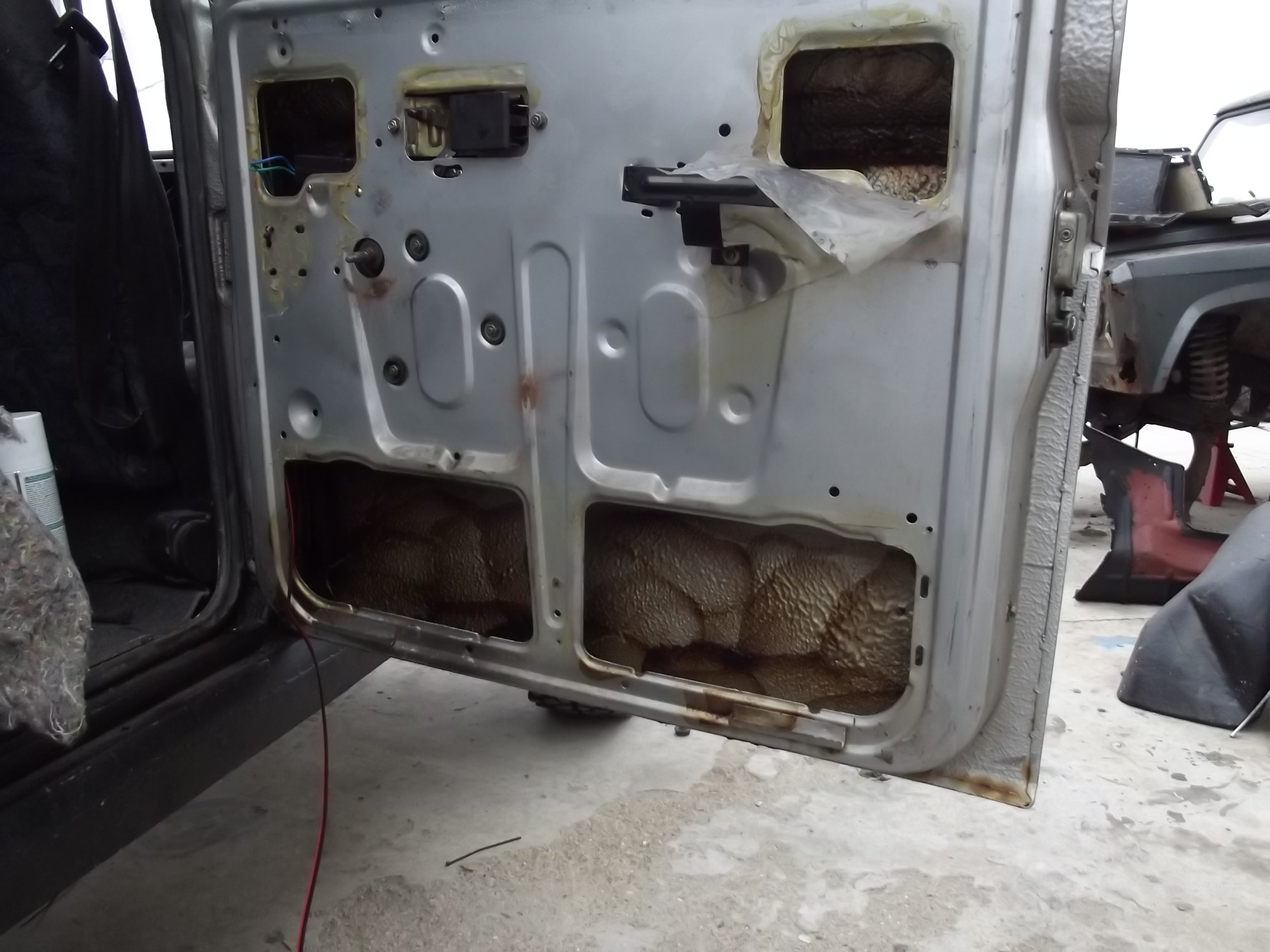 Vopsit partea din spate bena, montat definitiv bara spate, aeroterma montata, boxele in fetele de usi la fel, a fost ceva chin cu ele, mai mari de atat nu prea incap in fetele astea de usi  . Din nou am ramas uimit de ingenioziatetea inginerilor de la ARO care s-au gandit ca fetele de usi din plastic sunt mult mai rezistente, frumoase, etc decat cele din fasiute de fibra de sticla  ... Acum vreau si eu 2 din astea