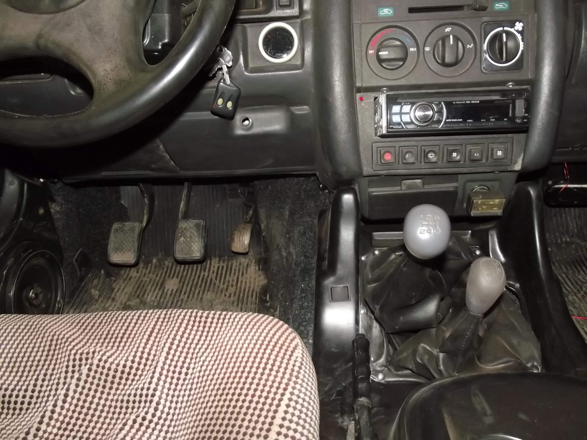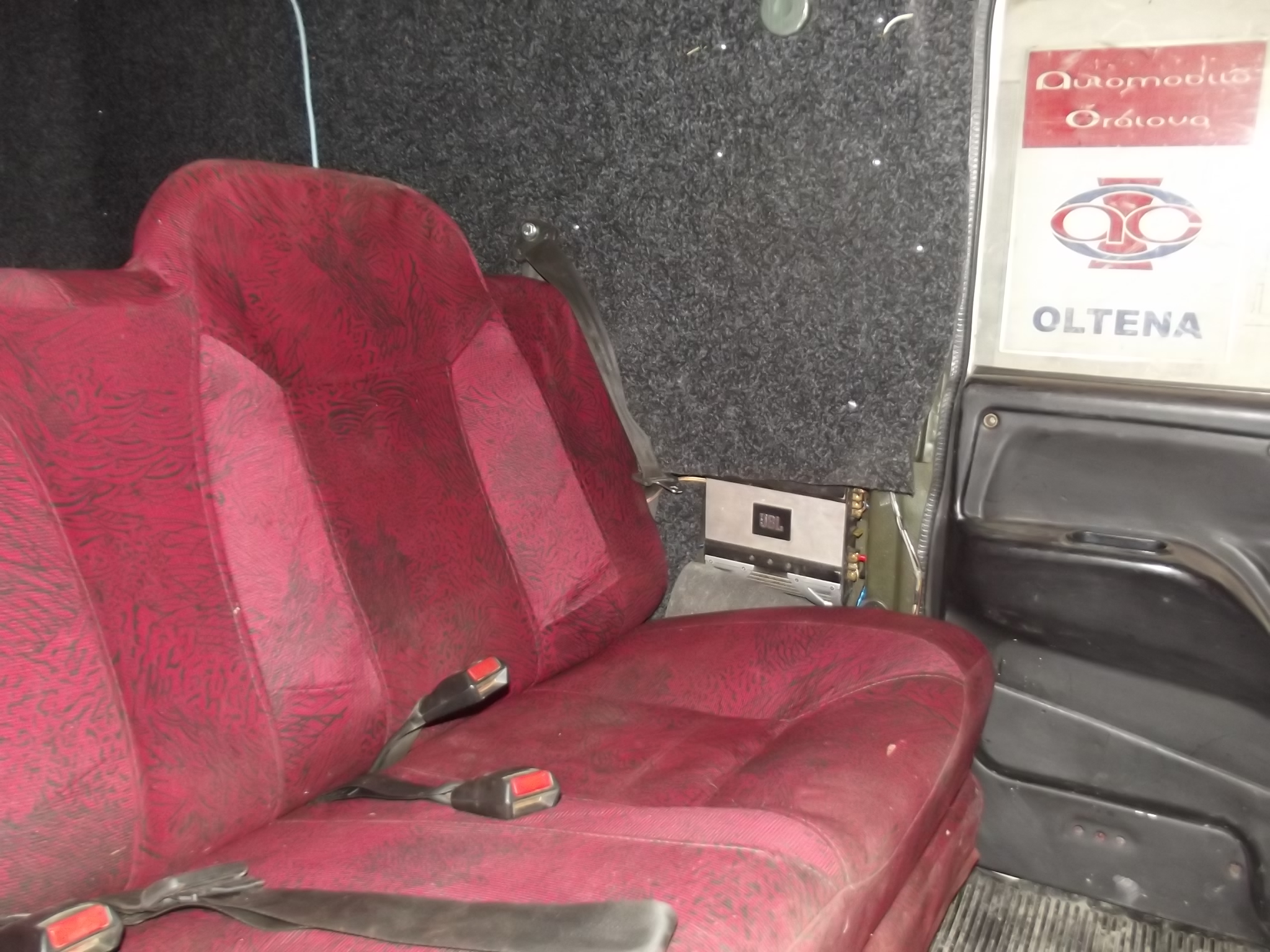 Intre timp s-a mai lucrat la maidanez, deja in interior devine caine de rasa Pana la urma butonul de troliu a fost montat in consola de la schimbatoare, arata ca si cum ar fi de acolo, voi vedea daca ii fac si buton de on-off sau pur si simplu scot mufa din cutia de comanda. jantele sunt gata, ferodourile la fel  (adica sunt praf...) interiorul in mare parte, bancheta fixata in toate punctele, centurile montate, statia, wooferul, mai trebuie sa iau niste pasla sa izolez si bena, momentan e izolata doar o laterala  , acoperite toate gaurele ramase din bena, cele de la lazile de munitie... fixat in final tot bordul, cu toate suruburile, bateria, + fixata.