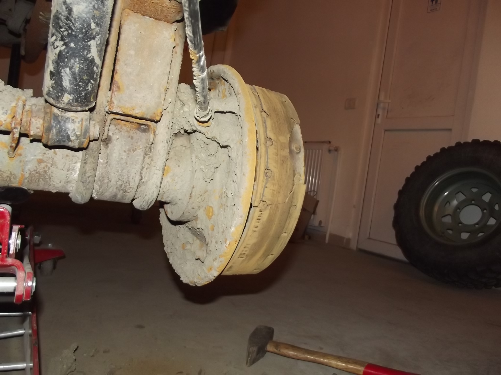 Stiu ca tratamentul ideal al jantelor era cel prezentat de tine, dar... costa  si estetica nu e prima in care vreau sa investesc in maidanez... important e sa maraie bine  ma rezum la curatarea lor pana la metal, vopsite cu vopsea verde lovitura de ciocan si cercul ala mic si subtire cu rosu, eventual si prezoanele  , ma astept cu siguranta sa apara iar rugina...doar e fier intre timp... lucrul continua, incet si sigur. am vorbit pentru ceva pasla... si am facut ceva ce ma sacaia de mult: suportul bateriei (curatat cu perie de sarma la flex, feruginol, grund, urmeaza aluband sa nu mai intre apa/noroi/vant, etc... si prinsa bateria calumea + facute legaturi serioase troliu, statie woofer... precum si prinderea banchetei (lateralele sudate calumea pe caroserie si asezate, prinse centurile, imi cam era teama in teren cu mai multi prieteni in masina, cu asa mult spatiu fara centuri... sper sa nu fie nevoie de ele, dar sa fie puse acolo pe coclauri. urmeaza lucru... de-as avea si timp mai mult, ce bine ar fi. Poimaine vor veni si ceva piese de rezerva, pregatim venirea 33'urilor  (fuzete complete cu homocinetici + planetare + bara directie, leviere, grupuri fata-spate 36/7)  ca sa avem ce rupe.. sper sa nu, dar sa fie acolo cabestane, d-aia te tot sunam, ca zicea tudor ca vroiai si tu ceva de pe tv-urile de armata taiate de la buzau... cu levieru, flansele, se mai aude ceva? maidanezul s-a plictisit si vrea la zapada