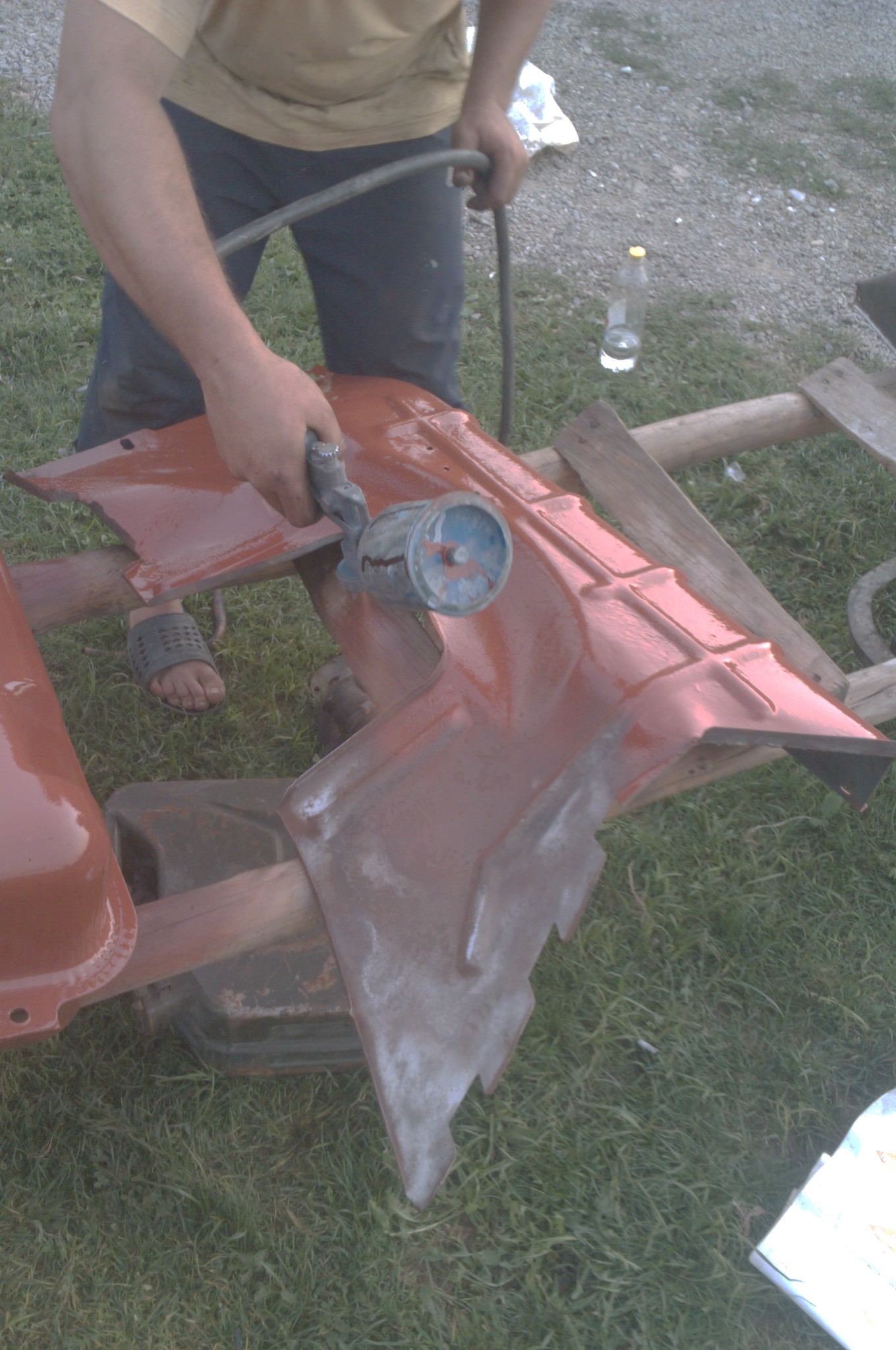 Lucrarile agricole de toamna continua, cu baietii veseli Razvan si Bogdan in frunte... Bogdan pentru cine nu stie e un vecin de'a lu Razvan, pe care l-am castigat la Loto. (sau cam asa ceva, ca e masochist sa munceasca pe degeaba la cotetzele altora). Deci motor pregatit, in asteptarea ponpei de injectie bosch (care e la ponpagiu), si curatzat sasiu si burta....