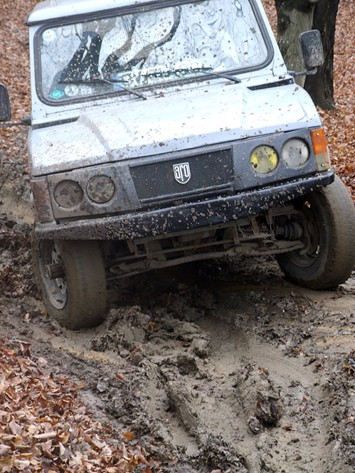 O ieşire scurtă. Iniţial trebuia să fim două aro 10 şi un miţu dar planurile picară în ultimul moment. Prin urmare am fost eu cu ARO 10.4 şi klez cu Pajero. Cum pământul e tot numai un mâl şi o frunză moartă, ne-am gândit că ar fi păcat să nu ne distrăm puţin cu gumele noastre de asfalt şi roase tot pe asfalt... :D