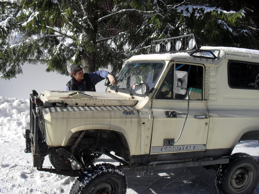 3000kg??? Pai aproape i a dublat greutatea ceea ce nu e bine deloc .In afara de intarit sasiul si scuturi ce i a mai pus pina la 1250kg?Daca pune 35 uri(cam astea s ar potrivi)nu prea o vad urcind la deal.Rapoarte banuiesc ca are 36 cu 7.Ai idee cit cintareste puntea fata?Eu am aproximat cam 100kg.Spor la lucru in continuare lui Madmax.
