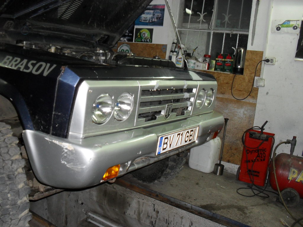 Viteza de impact cred ca a fost undeva la 40 -50km la ora ; din cauza ierbi foarte mari nu s-a vazut capul de pod eram concentrat sa pun masina pe drum si dintrodata bummmm  ca altfel ma tineam eu de volan bineeee ; proiectorul este crapat un pic dar are tote piesele se pate monta a scapat din fericire ;am sudat cu autogenul un pic pe ici pe colo cit sa tina pana la RK. astazi am inderptat capul de longeron am terminat si transmisia si iam dat o cheie este OK  maine montez radiatorul masca bara si parbrizul si sigur seara sunt cu moaca de ARO cea sexi a masini acasa , binenteles cu pozele aferente ;bara fata cea noua va veni ceva de genul ,,UAZ'' dar fara bulbar ; as vrea ca bulbarul sa fie independent de bara ; @cab512 multumesc pentru pont.; proiectul bari va fi un subiect separat care va cupinde tote detaliile @amb13 daca vi in Barsov da-mi un telefon si ne vedem