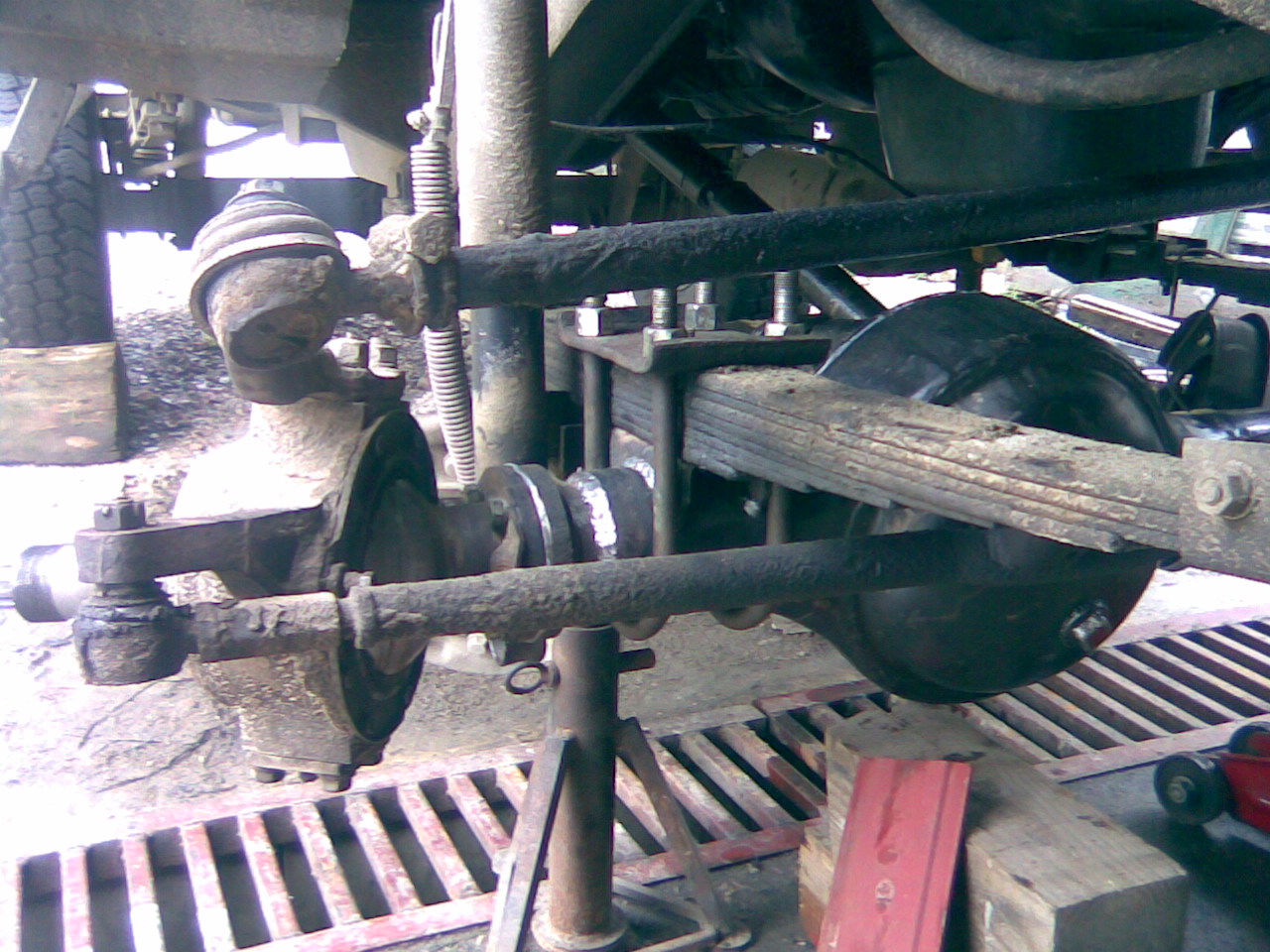 Daca duc la forja ambele leviere, si le indoi pe ambele in sus, in asa fel incat si bara de conexiune si cea care vine din caseta sa vina deasupra arcurilor? doar sa modific unghiul levierelor... fara alte suduri si chestii? Intre timp.. lucrul continua...