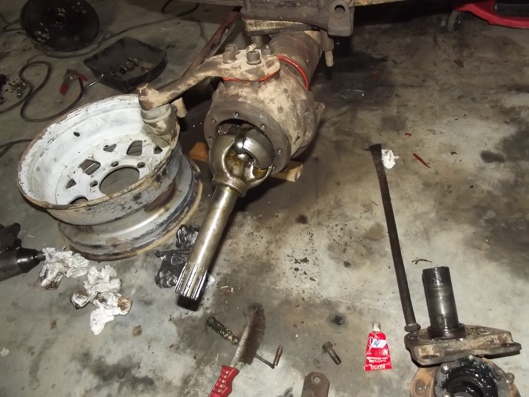 o sa mai fac totusi niste masuratori, azi dupa ce am pus si foaia secudara cea groasa, pentru ca e deja foarte grea fata si nu mai face fata cu configuratia dinainte, dupa care voi efectua niscai ramforsari... ca un rezumat al ieri, azi.. am pus grupu, 33/7, cel vechi, reglat.. juca.. strang si mai tare.. tot, strang foarte tare, deja loveau dintii in gaura dintre dintii coroanei..cacao, uzat mort, asa ca desfac fostul grup de fata, pun 33/8, reglez. a iesit bobocell  , asa ca in curand il voi monta si pe spate, 33/8 pentru ca de cand am marit puterea motorului a devenit cam scurt raportu asta. si doar in teren aven reductor dupa care, montat, chinuit ceva cu schimbatul planetarei, care e efectiv noua, tv-ul de armata de pe care provine cred ca avea sub 5.000 km... strans totu, smeclezit cu silicon, sa nu mai intre apa in punte  dupa care taiat bara si facuta sa vina pe colturi, ca sa prind si eu semnalizatoarele, desfacut foile, pus primele 2 de spate de 324 modificate, adaugat inca una scurta si rea, pus la loc, data viitoare ramane sa pun grupu pe spate, sa vad cu etrierii, si sa pun semering la cardanul fata si cardanul desigur...