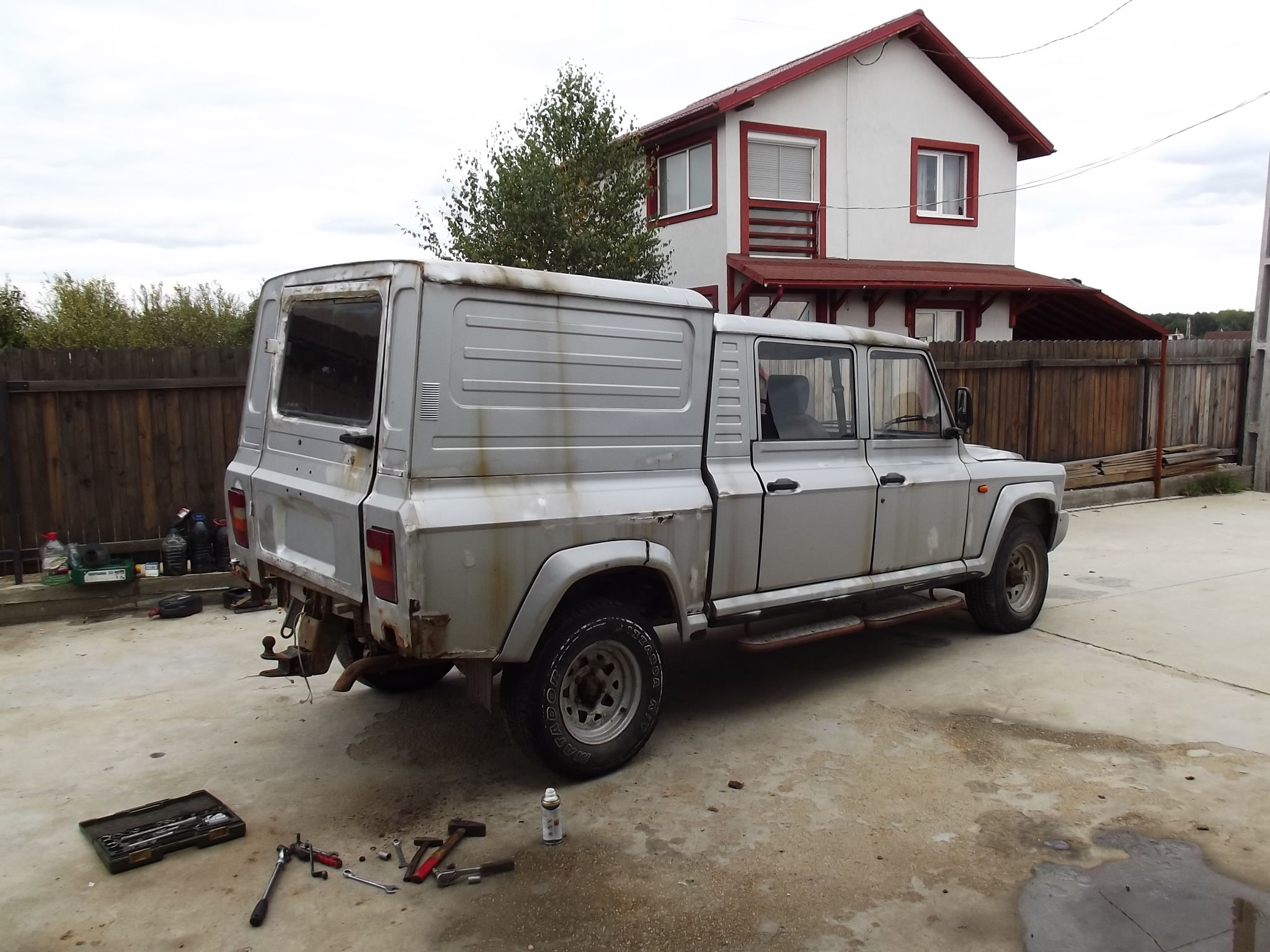 salut, long story short, am incepand de cateva zile un astfel de agregat. Aro 324, cutie+motor+reductor Toyota, motorina, aer conditionat din fabrica, frana pe tamburi pe toate rotile si cam atat. Tabla nu mai e. A ruginit. A se vedea pozele  Ce vreau/ce urmeaza/ce s-a intamplat deja: - sa ii fac rost de tabla. - sa ii pun punte fata fixa de TV/IMS. Aici am gasit puntea si urmeaza teoretic sa intru in posesia ei saptamana viitoare. Nu mi-e clar cum e mai bine.. sa pastrez arcurile elicoidale sau sa le pun pe cele pe foi, venite odata cu puntea. - sa pun discuri de frana pe fata. - sa ii intorc jantele, urmand apoi sa ii pun roti de 31. - revizie motor (distributie, poate pompa refacuta, bujii incadescente, filtre, etc..), revizie servo directie, ambreiaj, pompa frana / ambreiaj noi, etc.. Merita mentionat si faptul ca inspiratia privind alegerea masinii/motorizarii/etc.. a aparut dupa lecturarea topicului viewtopic.php?f=9&t=718