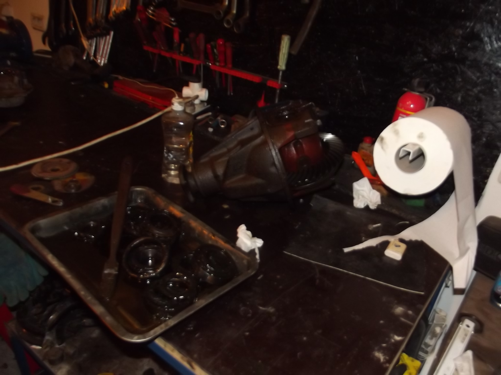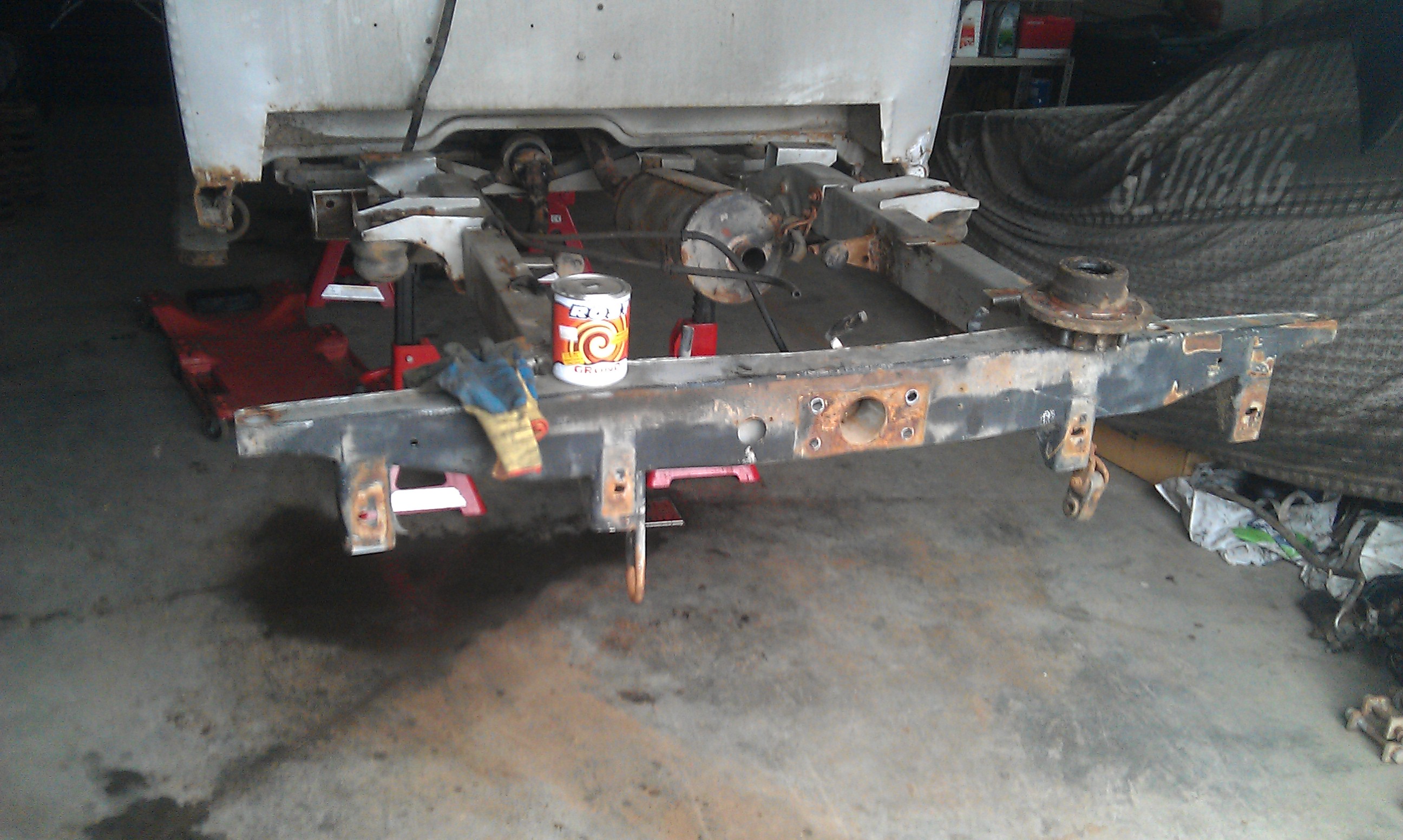 Intre timp se lucra... demontat fuzete de pe pejos, arata excelent toata suspensia mai putin bucsele de la bascula superioara... capete bara noi (de asam, dar noi...), pivoti super. Grunduit sasiu partea spate, + terminat vopsit punte spate, + curatat punte spate pe interior de noroi si mal si mizerie... scos "ulei" din grup fata, scos cardan si cruci cardanice moarte fata, + la o planetara... sa vad cum dracu scot culisanta, ca e mega intepenita acolo  ???? Deasemenea am scos si semeringuri + rulmenti din toti butucii, Vlad doreste sa-i schimbe de pe acum  , o alegere inteligenta.. eu am zis ca-i dau foc cand am schimbat la o roata si peste ~ 5.000 km s-a dus si celalalt Vineri va beneficia si de tinichigerie To be continued
