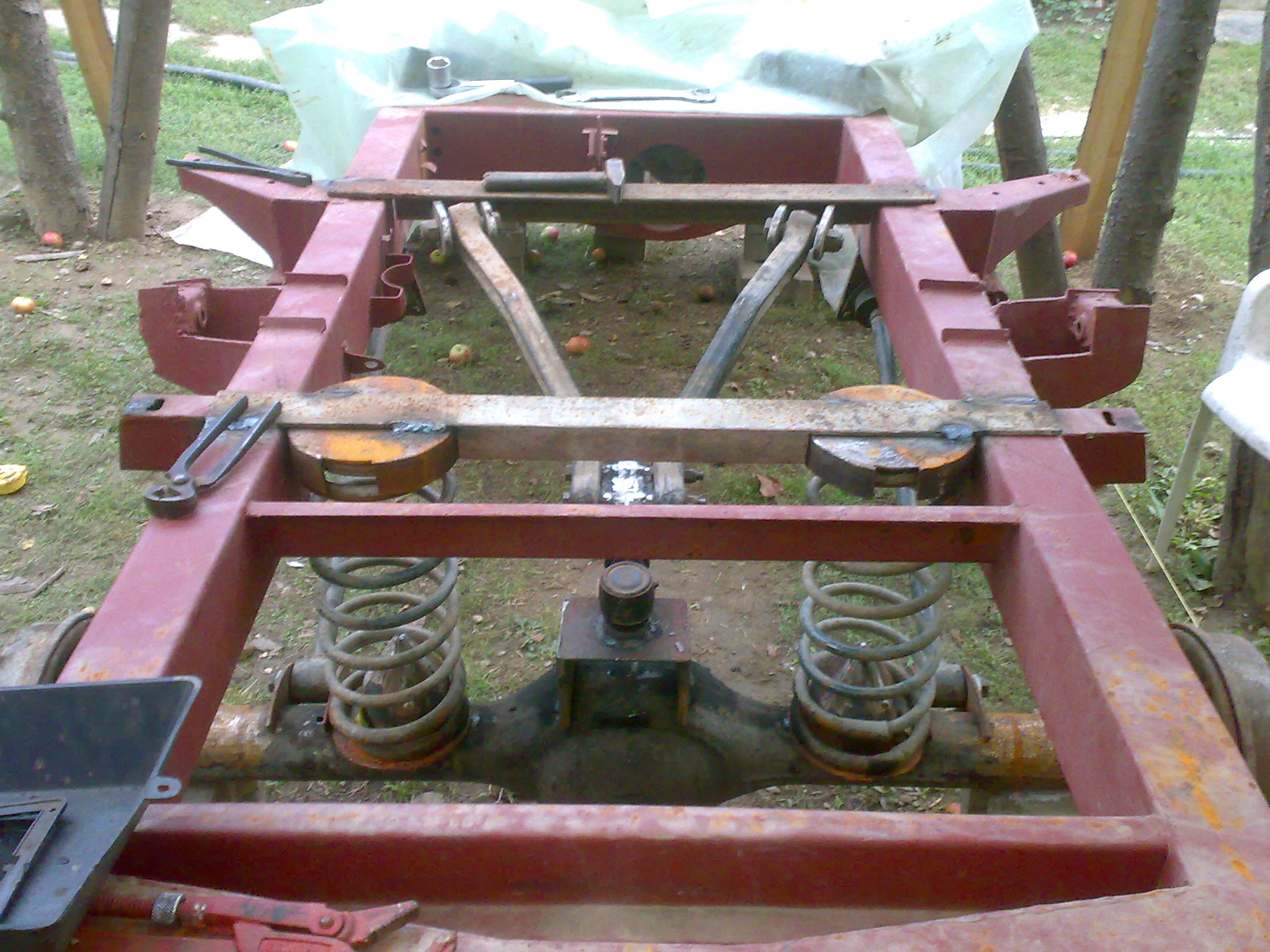 Am m-ai avansat un pic...Este c-am gata sasiul definitic,vopsit,doar 6 prezoane la un butuc sa prind capacul al planetara si este gata,vopsit,franele pe discuri,flanse,am procurat si un grup blocabil,la jante am modificat valvele,deoarece dupa ce le-am intors au ramas pe interior si atingea in etrieri,pe fata la omocinetica am pus in loc de pasla respectiva semeringuri de balansor de raba si facute flanse pentru prindere...am trecut si fata de la bucsi de bronz la rulmenti,dupa cum se stie am pus rulmenti de spate de dacie...